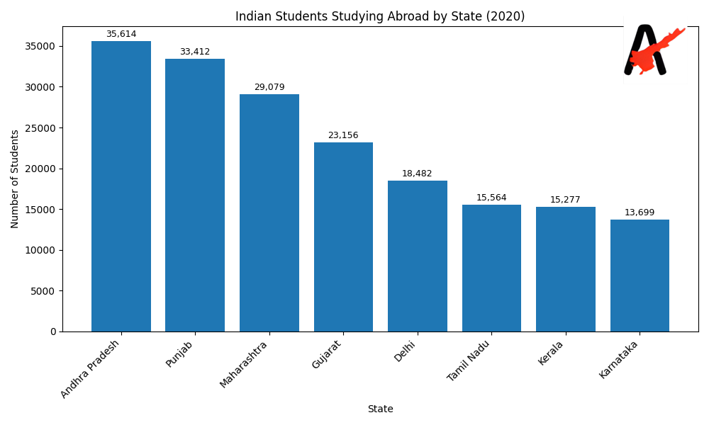 The number of students from Andhra Pradesh studying overseas rose from 46,818 in 2016 to 62,771 by 2018. Although the figure dipped sharply to 35,614 in 2020 due to Covid-19, the state has retained the top position among Indian states sending students abroad, the report noted.