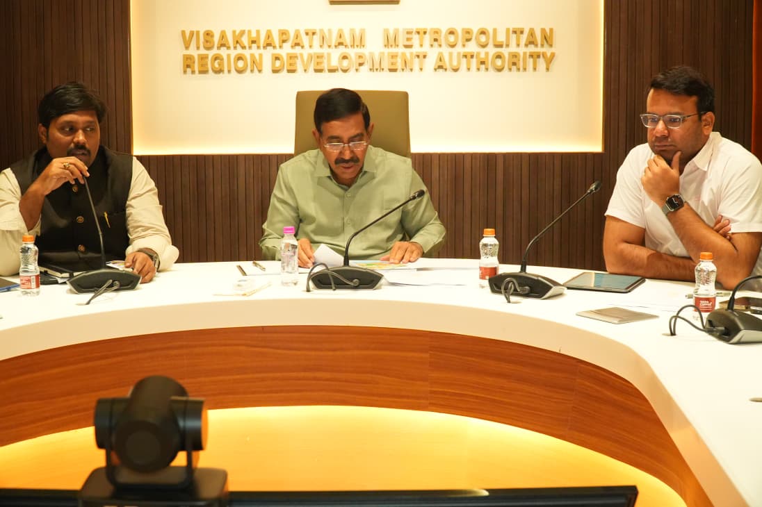 VMRDA Commissioner Tej Bharat, GVMC Commissioner Ketan Garg, and senior department officials briefed the minister on ongoing projects, including MIG layouts, master plan roads, and urban infrastructure.
