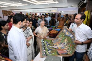 Minister Lokesh toured the exhibition, interacted with artisans, and appreciated their craftsmanship. On the occasion, he also unveiled a new eco-friendly handloom brand, ‘Kotturu Vasanta Varna’, which uses natural dyes and sustainable weaving techniques.