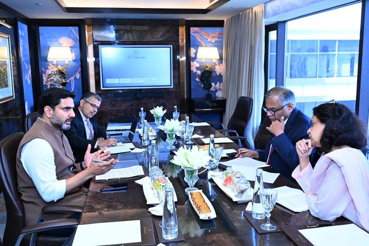 In a key meeting, Lokesh met Tata Group Chairman N. Chandrasekaran and senior CEOs from Tata Power Renewables, IHCL, Tata Elxsi, Tata AutoComp, Tata Advanced Systems, Tata Electronics, Tata Chemicals, Tata Projects, and ST Telemedia Global Data Centres.